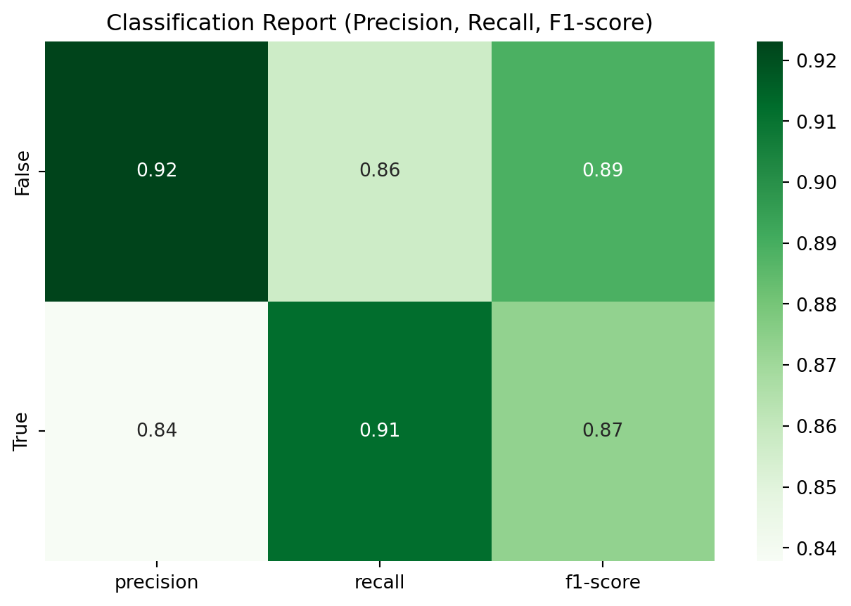plt.title('Classification Report (Precision, Recall, F1-score)')